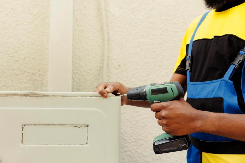 Schrauben nachziehen, Dübel prüfen, wackelige Stühle mit Holzleim und Zwingen stabilisieren. Wichtig: Überstände sofort abwischen, Winkligkeit kontrollieren und Trocknungszeiten respektieren. Möchten Sie eine kompakte Werkzeugliste für Einsteiger? Abonnieren Sie unseren monatlichen Tipp.